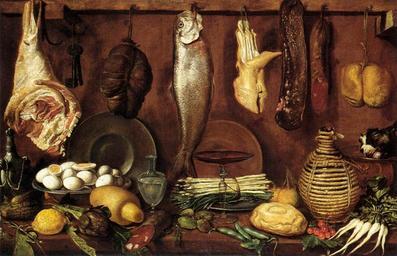 | Keywords: Jacopo Chimenti - Kitchen Still-Life - WGA11900.jpg Artwork Creator Jacopo Chimenti other date secondhalf other date century 16 Oil on canvas Private collection accession number object history credit line WGA link 11900 http //www wga hu/art/j/jacopo/empoli/kitchen jpg http //www wga hu/html/j/jacopo/empoli/kitchen html PD-old-100 painting still-life Italian 1551-1600 Jacopo Chimenti Kitchen Still-Life 16th-century paintings in unidentified private collections 16th-century paintings from Italy WGA form painting WGA type still-life WGA School Italian WGA time period 1551-1600 Keys in art Paintings of kitchens Meats in art Still life paintings of vegetables Eggs in art 16th-century oil on canvas paintings Dried fish Asparagus in art Reddish Plates in art Artichokes in art Bottles in art 16th-century paintings in private collections 1551-1600 paintings Still life paintings of fish |