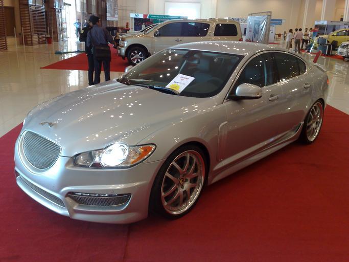 Keywords: Jaguar xf phnom penh 02042011774.jpg en Silver Jaguar XF at a motor show in Koh Pich Phnom Penh Cambodia in 2 April 2011 2011-04-02 own Dtfman cc-zero Uploaded with UploadWizard Jaguar XF X250 Saloon
