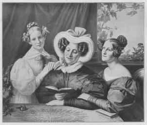 | Keywords: Jahrhundertausstellung 1906 KatNr. 0074.jpg Artwork Creator Carl Joseph Begas Familienbild Oil Canvas cm 92 108 5 Kaiserl Gesandter W von Dirksen Berlin lt Quelle self scanned from own book Vorstand der Deutschen Jahrhundertausstellung Herausgeber žKatalog zur Ausstellung deutscher Kunst aus der Zeit von 1775 “1875 in der Königlichen Nationalgalerie Berlin Verlag F Bruckmann AG München 1906 2 Bände 1833 PD-old-70-1923 Other versions Carl Joseph Begas Jahrhundertausstellung deutscher Kunst 1906 ImageNote 1 19 24 1678 1405 1722 1461 2 Bräunlichgraues Fleisch mit dem Rosa das sowohl in der Decke des Tisches wie in dem Stück Sessel vorkommt Die Frau in der Mitte in schokoladeseidenem Kleid Stark leuchtendbraunes Haar Die Dame rechts im Blau des Himmels das Mädchen mit Flachshaar in mattrosa scheinendem weißen Kleid mit rosa Krawatte “ Bez unten links C Begas F 1833 ImageNoteEnd 1 |