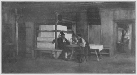 Keywords: Jahrhundertausstellung 1906 KatNr. 0674.jpg Edmund Harburger Tiroler Wirtsstube Stafflach am Brenner Technique Oil Canvas cm 60 112 E Harburger München lt Quelle self scanned from own book Vorstand der Deutschen Jahrhundertausstellung Herausgeber žKatalog zur Ausstellung deutscher Kunst aus der Zeit von 1775 “1875 in der Königlichen Nationalgalerie Berlin Verlag F Bruckmann AG München 1906 2 Bände 1872 PD-old-70-1923 Other versions Edmund Harburger Jahrhundertausstellung deutscher Kunst 1906 ImageNote 1 16 16 1842 1001 1884 1034 2 Das Holz der Täfelung in einem mit Orange durchsetzten Gelbbraun Die Bänke der Tisch und der Boden grau Der Ofen in starkem Kontrast zu dem Schwarz des Bauern mit dem Hut in leuchtendem Weiß mit Spuren von Gelb und mit grauen Schatten Das Tischtuch weiß mit grauen Schatten In dem Heiligenbild an der Wand Rot und Schwarz auf braunrotem Grund Die Kleider der Leute abgesehen von dem Schwarz des Bauern mit dem Hut in Mischtönen von Braun und Grau mit roten Einzelheiten “ Bez unten links braun Stafflach am Brenner E Harburger “ 1872 ImageNoteEnd 1 |
