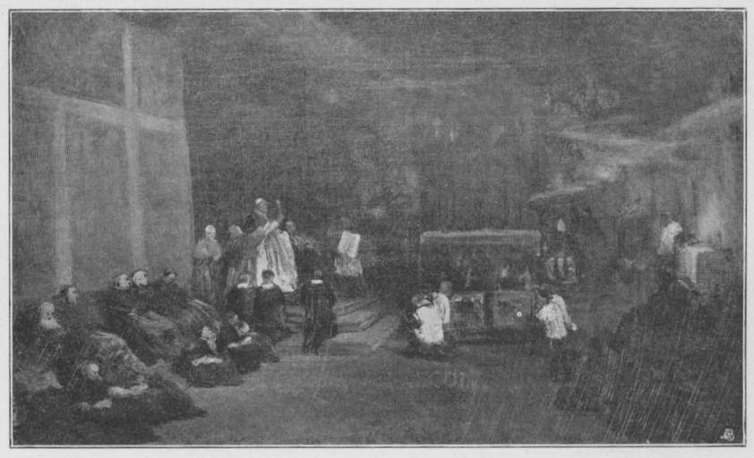 Keywords: Jahrhundertausstellung 1906 KatNr. 0692b.jpg Oil Canvas cm 36 60 Ernst Hausmann Berlin lt Quelle self scanned from own book Vorstand der Deutschen Jahrhundertausstellung Herausgeber žKatalog zur Ausstellung deutscher Kunst aus der Zeit von 1775 “1875 in der Königlichen Nationalgalerie Berlin Verlag F Bruckmann AG München 1906 2 Bände 1854 PD-old-70-1923 Other versions ImageNote 1 15 18 1294 770 1324 805 2 Blattgrüner Fußboden mit dunkelgrünen Schatten Die Wand links gebräuntes Ockergelb Thronhimmel und Mittelwand dunkelbraune Töne mit Braunrot durchsetzt Auf dem kaum angedeuteten Altar der rechten Wand der gelbe Rauch brennender Kerzen Das Rot fast purpurn in den Stufen und einzelnen Gewändern wird in anderen rotbraun Die Kutten der am Boden Sitzenden meistens dunkelbraun Die drei auf den Stufen knieenden Männer schwarz “ Bez unten rechts F K Hausmann 1854 “ ImageNoteEnd 1 Friedrich Karl Hausmann Jahrhundertausstellung deutscher Kunst 1906