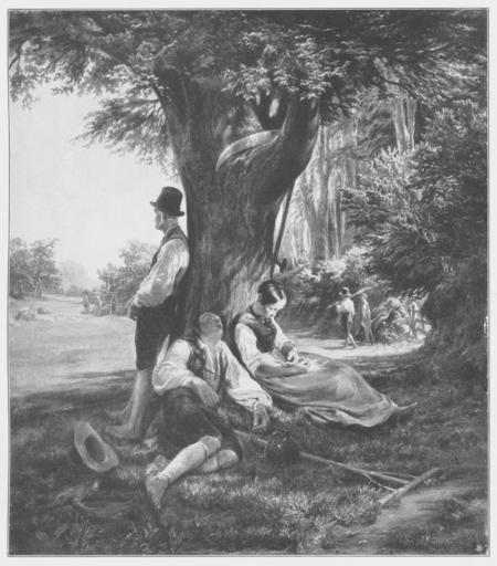 | Keywords: Jahrhundertausstellung 1906 KatNr. 0802.jpg Artwork Creator Hermann Kauffmann Landleute bei der Ernte Mittagsruhe haltend Oil Canvas cm 52 6 48 5 Kunsthalle Hamburg lt Quelle self scanned from own book Vorstand der Deutschen Jahrhundertausstellung Herausgeber žKatalog zur Ausstellung deutscher Kunst aus der Zeit von 1775 “1875 in der Königlichen Nationalgalerie Berlin Verlag F Bruckmann AG München 1906 2 Bände 1845 PD-old-70-1923 Other versions Hermann Kauffmann Jahrhundertausstellung deutscher Kunst 1906 ImageNote 1 26 26 1645 1871 1703 1936 2 Braungrüner Gesamtton Bläulichgrauer Hintergrund Die Sonnenreflexe gewinnen aus den Lokalfarben reine Töne das Weiß der Hemden das Grün des Mieders und die roten Stellen Das Fleisch in bräunlichem Rosa Blauer Himmel mit rosaweißen und grauen Wolken “ Bez unten rechts braun H Kauffmann Links 1845 ImageNoteEnd 1 |