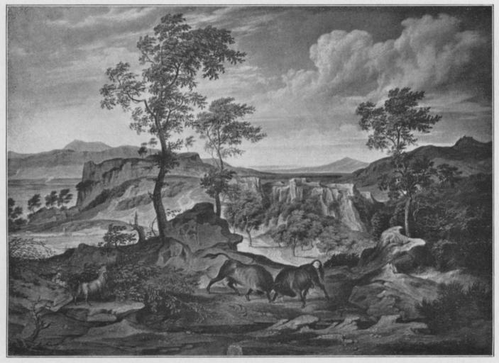 | Keywords: Jahrhundertausstellung 1906 KatNr. 0877.jpg Artwork Creator Joseph Anton Koch Die Serpentara bei Olevano mit kämpfenden Stieren Die kämpfenden Stiere sollen von B Genelli sein Oil Canvas cm 75 102 Exzellenz Dr Richard Schöne Berlin lt Quelle self scanned from own book Vorstand der Deutschen Jahrhundertausstellung Herausgeber žKatalog zur Ausstellung deutscher Kunst aus der Zeit von 1775 “1875 in der Königlichen Nationalgalerie Berlin Verlag F Bruckmann AG München 1906 2 Bände PD-old-70-1923 Other versions Joseph Anton Koch Jahrhundertausstellung deutscher Kunst 1906 ImageNote 1 21 14 1599 1165 1642 1196 2 Das Grau und das Braun der Stiere repräsentieren die Farben der ganzen Landschaft Hintergrund blaugrau “ Bez unten rechts braun J K “ 1832 “ Die kämpfenden Stiere sollen von B Genelli sein ImageNoteEnd 1 |