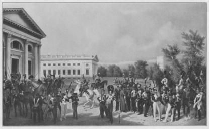 Keywords: Jahrhundertausstellung 1906 KatNr. 0910.jpg Artwork Creator Franz Krüger Russische Garde Oil Canvas cm 142 227 Kaiserliches Alexander-Palais Zarskoje Sselo bei St Petersburg lt Quelle self scanned from own book Vorstand der Deutschen Jahrhundertausstellung Herausgeber žKatalog zur Ausstellung deutscher Kunst aus der Zeit von 1775 “1875 in der Königlichen Nationalgalerie Berlin Verlag F Bruckmann AG München 1906 2 Bände 1841 PD-old-70-1923 Other versions Franz Krüger Jahrhundertausstellung deutscher Kunst 1906 ImageNote 1 18 18 1960 1190 2000 1235 2 Das Gebäude gelb weißgelbe Säulen kupfergrünes Dach Der Platz in rötlichem Gelbbraun Der belichtete Vordergrund in hellem Havana Die Gruppe ist durch das Purpur einzelner Uniformen belebt Der Himmel über dem Gebäude gelblich geht nach rechts in dunkles Blaugrau über Mattgrünes und braunes Blätterwerk “ Bez unten rechts braun F Krüger 1841 ImageNoteEnd 1 |