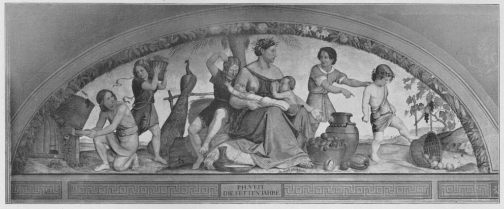 | Keywords: Jahrhundertausstellung 1906 KatNr. 1864a.jpg Artwork Creator Philipp Veit Die sieben fetten Jahre Oil Canvas cm 150 480 Nationalgalerie Berlin lt Quelle Vorstand der Deutschen Jahrhundertausstellung Herausgeber žKatalog zur Ausstellung deutscher Kunst aus der Zeit von 1775 “1875 in der Königlichen Nationalgalerie Berlin Verlag F Bruckmann AG München 1906 2 Bände ; self scanned from own book 1816 und 1817 PD-old-70-1923 Other versions Philipp Veit Jahrhundertausstellung deutscher Kunst 1906 Lunette paintings ImageNote 1 18 9 2370 964 2397 994 2 Lünette in Fresko aus der Casa Bartholdi in Rom Die Frauengestalt in violettgrauem Gewand auf strohgelbem Getreide Die Knaben in rosa mattgrünen und hellblauen Gewändern Weißgrauer Grund “ 1816 und 1817 ImageNoteEnd 1 |