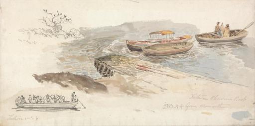 Keywords: James Ward - A Canopied Boat and Two Rowing Boats at a Jetty; Inset Left, a Pencil Study of the Tintern Livestock... - Google Art Project.jpg Inscribed in graphite lower left Tintern ; lower right Tintern Phasum Boat JWD RA from Monmouth Inscription _Marks Paul Mellon collector's stamp on verso Inscription _Signed_and_Dated Signed in graphite lower right JWD RA Not on View Graphite and watercolor on medium smooth cream wove paper jetty erosion protection work ferry landscape boat special url_id LgENZK0AIUQGaA PD-old-100-1923 1859 James Ward Google Art Project works by James Ward |