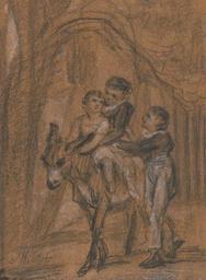 Keywords: James Ward - Study for the Oil Painting "The Children of Theophilus Levitt, Esquire." - Google Art Project.jpg Inscribed in gray ink lower left JW RA ; in brown ink verso center Design for Portraits of the children of Theophilus Levitt Esq- at Winchner Park Inscription _Signed_and_Dated Signed in gray ink lower left JW RA Not on View Black and white chalk on medium slightly texture brown wove paper donkey children study visual work genre subject special url_id tgGaD1t26rbGbQ PD-old-100-1923 1859 Drawings by James Ward Google Art Project works by James Ward |