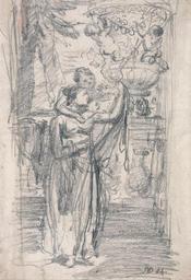 Keywords: James Ward - Two Girls (or Lady and Child) on a Garden Terrace near an Ornamental Urn - Google Art Project.jpg Inscribed in brown ink lower right JWD RA ; in graphite on old mount as per D S card no longer with drawing Design for the two Miss Mans portraits Inscription _Signed_and_Dated Signed in brown ink lower right JWD RA Not on View Black chalk on medium smooth cream wove paper terrace genre subject urn special url_id FAGJZOqQdtTLbg PD-old-100-1923 1859 Drawings by James Ward Google Art Project works by James Ward |
