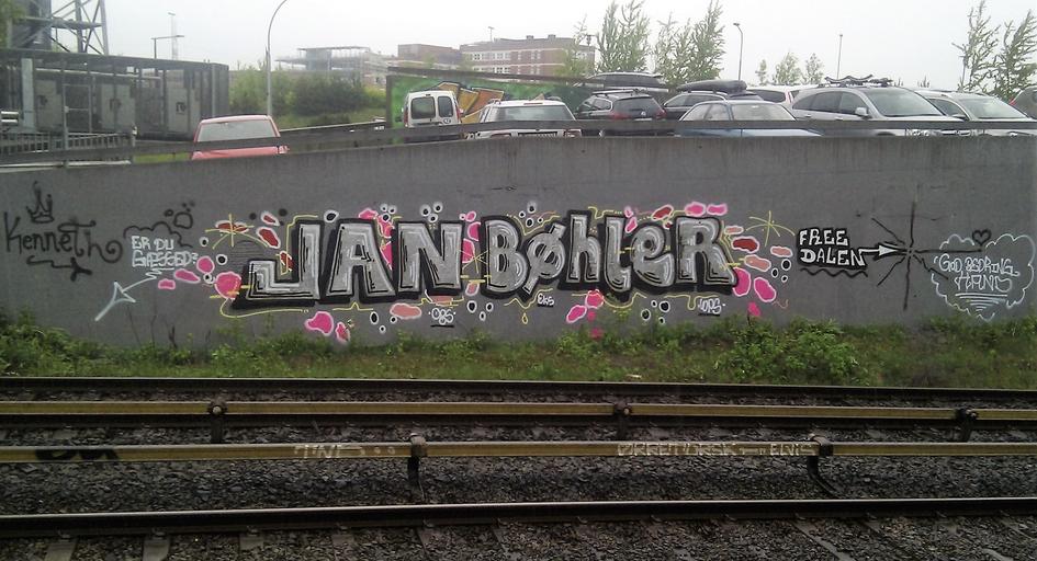 Keywords: Jan Bøhler graffiti Mai 2016 Oslo Økern.jpg en Graffiti along the subway tracks between Økern and Risløkka at the entrance to Groruddalen Oslo no Jan Bøhler-graffiti på østsida av T-banesporet mellom Økern og Risløkka stasjon 2016-05-23 09 17 03 own Ida Tolgensbakk other versions cc-zero Graffiti in Oslo Subterranean rapid transit Rapid transit |