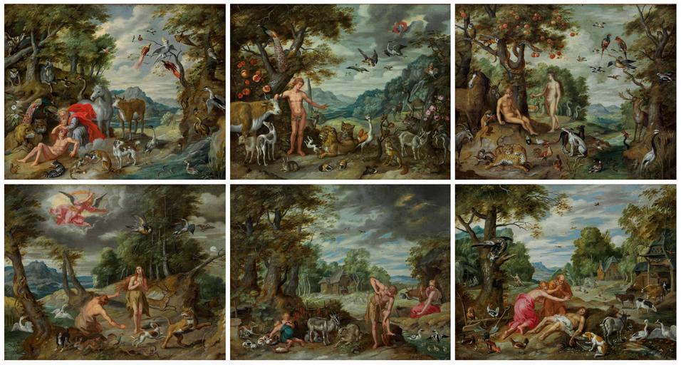 Keywords: Jan Breughel de Jonge - De geschiedenis van Adam en Eva.jpg Artwork Creator Jan Breughel II LangSwitch Die Geschichte von Adam und Eva 1 Die Erschaffung Adams 2 Adam gibt den Tieren Namen 3 Die Versuchung Adams; 4 Die Vertreibung aus dem Paradies 5 Adam bei der Arbeit im Feld und 6 Der Tod des Abel The story of Adam and Eve The Creation of Adam; Adam Naming the Animals; The Temptation of Adam; The Expulsion from Paradise; Adam at Work in the Field; and The Death of Abel century 17 oil copper LangSwitch each jeweils cm 66 6 84 5 object history Huybert Ketelaar Amsterdam 1774 <br/>Marquis Merialva Paris 1814 <br/>Duke of Newcastle Chumber 1896 <br/>Van dan Hecke Antwerp 1920 <br/>Anonymous sale; Christie's London 29 May 1981 lots 119-124 <br/>Private collection New York 1981 <br/>Anonymous sale; Galerie Koller Zürich 13-14 May 1982 lots 5064-5069 where purchased by the present owners credit line all signed 'J Breughel' lower left or lower right Christies online 5529494 Other versions PD-old-100 History paintings by Jan Breughel II Adam and Eva 17th-century paintings of Adam and Eve Creation of Adam Oil on copper 17th-century paintings location missing Paintings with signatures 17th-century paintings not categorised by year |