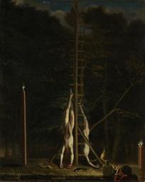 | Keywords: Jan de Baen- De lijken van de gebroeders de Witt.jpg attributed to LangSwitch The mutilated corpses of Johan and Cornelis de Witt hung on the stake on the Groene Zoodje in The Hague 20 August 1682 Bottom right a man with a torch De verminkte lichamen van Johan de Witt en Cornelis de Witt opgehangen aan de wip op het Groene Zoodje aan de Vijverberg te Den Haag 20 augustus 1672 Rechtsvoor een man met een toorts between 1672 1675 ucfirst Oil on canvas cm 69 5 56 Institution Rijksmuseum Amsterdam 2 18 place of discovery object history ProvenanceEvent 1802 acquisition LangSwitch die the le de Nationale Konst-gallerij Huis ten Bosch The Hague ProvenanceEvent 1808 transfer LangSwitch das the au het Rijksmuseum Amsterdam Amsterdam exhibition history Denkbeeldig vaderland 32 credit line Dit sijn de lijcken van Jan ende Cornelis de Witt door een voornaem schilder naer het leeven afgeschildert soo als deselven des avonts ten elff ueren noch aenden wip hingen Cornelis is die geene sonder pairuque Jan de Witt met sijn eijgen hair Dit is het eenichste principaal naer het leven gedaen den XX augusti MDCLXXII en daerom veel gelt waerdich verso odt Transcriptie in modern Nederlands Dit zijn de lijken van Jan en Cornelis de Witt door een vooraanstaand schilder naar het leven geschilderd zoals zij 's avonds om elf uur nog aan de wip hingen Cornelis is degene zonder pruik Jan de Witt heeft zijn eigen haar Dit is het enige schilderij naar het leven geschilderd op 20e augustus 1672 en daarom veel geld waard accession number SK-A-15 place of creation The Hague www rijksmuseum nl http //www rijksmuseum nl/ lang nl Home http //hdl handle net/10934/RM0001 COLLECT 5873 Info Jan de Baen - The Corpses of the De Witt Brothers - WGA1149 jpg Version from www wga hu anonymous SK-A-15 Attributed to Jan de Baen LangSwitch The Corpses of the De Witt Brothers De lijken van de gebroeders De Witt ~ 1672 - ~ 1675 cm 69 5 56 anonymous 15381 Jan de Baen LangSwitch The corpses of the brothers De Witt on the Groene Zoodje at the Lange Vijverberg in The Hague 20 August 1672 De lijken van de gebroeders De Witt opgehangen op het Groene Zoodje aan de Vijverberg te Den Haag 20 augustus 1672 1672 of later 1672-1675 cm 69 5 56 anonymous http //www wga hu/html/b/baen/corpses html Jan de Baen The Corpses of the De Witt Brothers 1672 Size cm 70 56 anonymous 1977 4 Rijksmuseum Kunstkrant vol 3 no 8 anonymous 1998 ˜Vijanden en oorlogen ™ 20 Eeuwen Nederland 4 P-page 93 Bruijnen Y M van de Laar 2006 'Geschreven gestempeld of geplakt Verscholen informatie op de keerzijde van schilderijen' Bulletin van het Rijksmuseum 54 P-page 428-449 Ill 6 94 94 A 15 image Domenicus-van Soest Marleen 2003 Les Chefs-d'oeuvre Guide mus cat Amsterdam Rijksmuseum Amsterdam P-page 33 i18n/as Les Corps des frères De Witt Dubourcq P L 1872 Beschrijving der schilderijen op 's Rijks Museum te Amsterdam met fac-simile der naamteekens Amsterdam Frans Buffa Zonen P-page 6 i18n/catno 10 i18n/as Jan de Baen De Lijken van de Gebroeders de Witt cm 67 54 Grijzenhout F 1984 'Tempel voor Nederland De Nationale Konst-Gallerij in 's-Gravenhage' Nederlands Kunsthistorische Jaarboek vol 35 P-page 20 Ill 17 Haijer J E 1967 'De moord op de gebroeders De Wit' Spiegel Historiael P-page 417 with image on p-page 424 Ham G van der juli-augustus 2007 ˜Heldenverering ™ Kunstkrant Rijksmuseum Amsterdam vol 33 no 4 P-page 7 Luttervelt R van 1960 'Herinneringen aan Johan en Cornelis de Witt in het Rijksmuseum' Bulletin van het Rijksmuseum 8 P-page 27-63 Moes E W Ed van Biema 1909 De Nationale Konst-Gallery en het Koninklijk Museum Amsterdam s n P-page 58 59-60 218 Muller E 1998 6 ˜'Liever een gordijn geschoven voor het akeligst schouwtoneel ' De moord op de gebroeders de Wit in de Schilderkunst van de negentiende eeuw ™ De negentiende eeuw 2 P-page 113-146 With image Riemsdijk B W F van 1918 Catalogus der schilderijen Amsterdam Rijks museum P-page 37 i18n/catno 405 Willink J 1979 'Verslaggevers van geweld' Kunstschrift vol 23 no 6 P-page 179 Ill 23 Q17319663 PD-old-100 Upside down in art Hanging in art Jan de Baen 1672 Paintings by Jan de Baen in the Rijksmuseum Amsterdam Attributed Rijksmuseum Amsterdam - Room 2 18 Baen Death in paintings 17th-century oil on canvas paintings in the Netherlands Human cannibalism in art History of the Netherlands Murder of Johan and Cornelis de Witt Lange Vijverberg The Hague Groene Zoodje The Hague The Hague in the 1670s Nationale Konst-Gallery |
