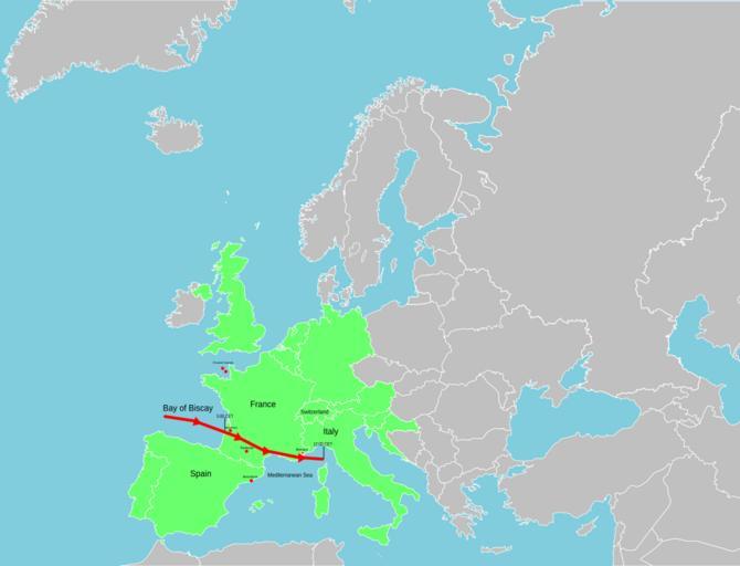 | Keywords: January 2009 Bay of Biscay storm tracker.svg A map of Europe showing the location of the January 2009 Mediterranean storm The red line shows the track of the storm Self-made losely based upon http //newsimg bbc co uk/media/images/45410000/gif/_45410013_fra_spa_storm_466_4 gif BBC map but not a derivitive work 2009-01-25 Jolly Janner Cropped bitmap for article use Klaus storm | ||||