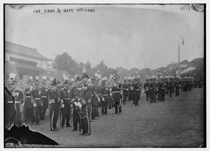 | Keywords: Jap(anese) army & navy officers (LOC) (25077438043).jpg Bain News Service publisher Japanese army navy officers between ca 1915 and ca 1920 1 negative glass ; 5 x 7 in or smaller Notes Title from unverified data provided by the Bain News Service on the negative Forms part of George Grantham Bain Collection Library of Congress Format Glass negatives Rights Info No known restrictions on publication Repository Library of Congress Prints and Photographs Division Washington D C 20540 USA http //hdl loc gov/loc pnp/pp print hdl loc gov/loc pnp/pp print General information about the Bain Collection is available at http //hdl loc gov/loc pnp/pp ggbain hdl loc gov/loc pnp/pp ggbain Higher resolution image is available Persistent URL http //hdl loc gov/loc pnp/ggbain 26313 hdl loc gov/loc pnp/ggbain 26313 Call Number LC-B2- 4513-2 https //www flickr com/photos/library_of_congress/25077438043/ Japanese army navy officers LOC LOC-image ggbain 26313 https //www flickr com/people/8623220 N02 The Library of Congress http //www loc gov/rr/print/195_copr html noknown The Library of Congress Flickr Commons PD-Bain The Library of Congress https //flickr com/photos/8623220 N02/25077438043 2016-09-08 06 12 19 pd Uncategorized 2016 November 5 |