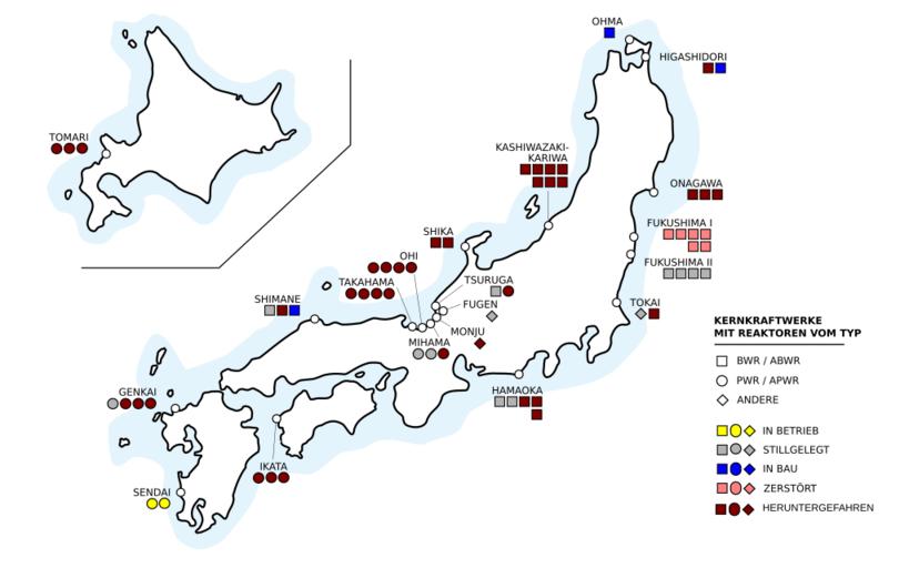 | Keywords: Japan atomic power plants v2 de.svg en Nuclear power plants in Japan de Atomkraftwerke in Japan Unterschiedliche Symbole weisen auf den Reaktortyp des Kraftwerks hin 1 BWR/ABWR - Boiling Water Reactor dt Siedewasserreaktor bzw Advanced Boiling Water Reactor 2 PWR/APWR - Pressurized water reactor dt Druckwasserreaktor und Advanced Pressurized Water Reactor 3 Andere - Bspw Advanced Thermal Reactor Fugen oder Fast Breeder Reactor Monju <br /> Farben geben Auskunft über den Zustand des bzw der Reaktoren Gelb - In Betrieb Grau - Stillgelegt Blau - In Bau befindlich Orange - Zerstört Dunkelrot - Heruntergefahren <br /> Hinweise Das Kernkraftwerk Monju 1 Reaktor ist in Testbetrieb Own Information source http //cnic jp/english/data/index html Citizens' Nuclear Information Center of Japan January 2011 kbegemot 2011-03-22 Cc-zero Nuclear power plants in Japan Nuclear power plant maps SVG maps of Japan |