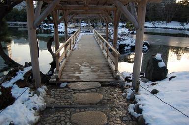 Keywords: japan garden snow winter bridge