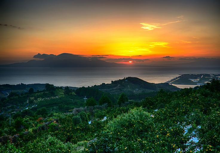 Keywords: japan kumamoto city kawachi sunset hdr sea mandarin oranges mt fugen in unzen