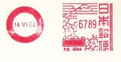 Keywords: Japan stamp type AA7.jpg en Meter stamp catalog image Japan type AA7 Richard Stambaugh Richard Stambaugh 2011-10-24 Meter stamps of Japan