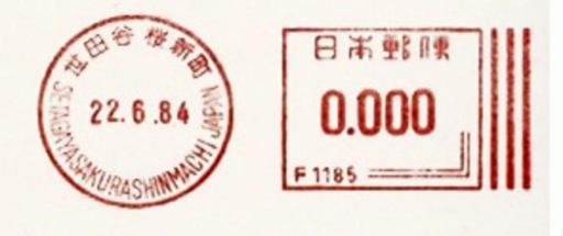 Keywords: Japan stamp type B1.jpg en Meter stamp catalog image Japan type B1 Richard Stambaugh Richard Stambaugh 2011-10-24 Meter stamps of Japan