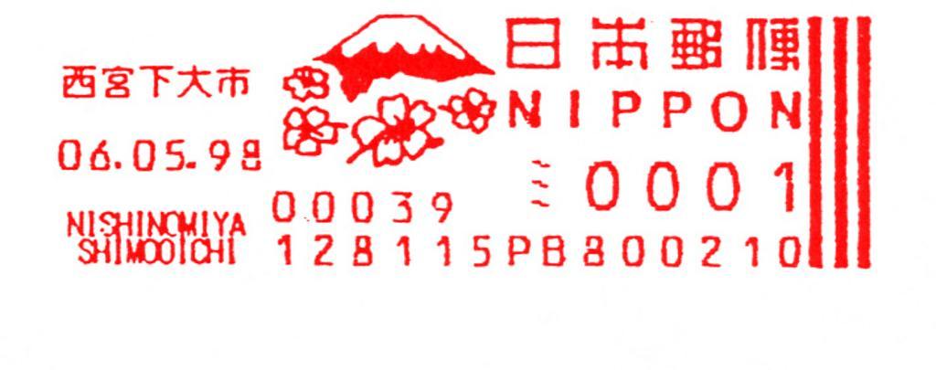 Keywords: Japan stamp type FD2.jpg en Meter stamp catalog image Japan type FD2 Richard Stambaugh Richard Stambaugh 2011-10-24 Meter stamps of Japan