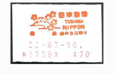 Keywords: Japan stamp type PV4.jpg en Meter stamp catalog image Japan type PV4 Richard Stambaugh Richard Stambaugh 2011-10-24 Meter stamps of Japan