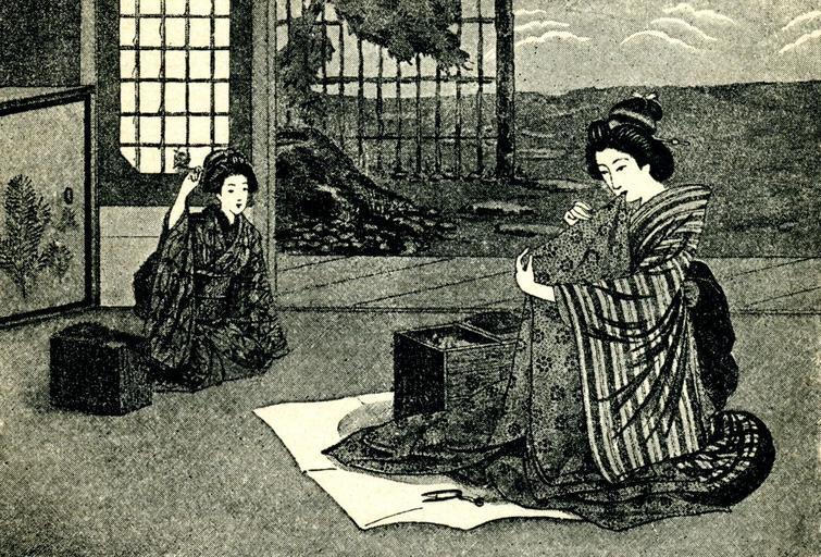 | Keywords: Japanese dressmaker. Before 1902.jpg ru Японская по тниха Изоб ажение из книги Япония и японцы 1902 год Ст аница 93 en Japanese dressmaker Image from the book Japan And Japanese 1902 Page 93 Scanning of the book December 31 2009 / скани ование книги 31 12 2009 Author < 1902 PD-Old Japan and Japanese Tailors in art Women of Japan in art Kimono |