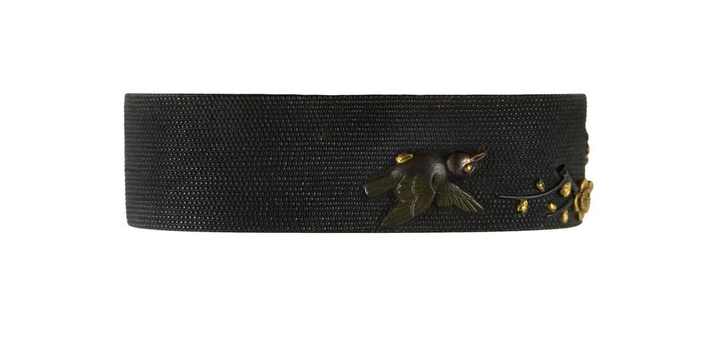 Keywords: Japanese - Fuchi with Plum Tree and Bird - Walters 51996 - Back.jpg On the front is a plum tree in bloom A bird is on the reverse Both are emblems of spring This is part of a set with Walters 51 997 date shakudo copper gold cm 3 7 accession number 51 996 18979 William T / Henry Walters Collection Baltimore date and mode of acquisition unknown Walters Art Museum Henry Walters Acquired by William T or Henry Walters in black ink on the side indistint Japanese characters raifu place of origin Japan Walters Art Museum license Fuchi in the Walters Art Museum Media contributed by the Walters Art Museum needs category review |