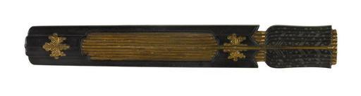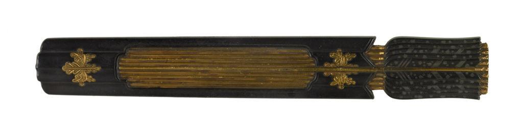 Keywords: Japanese - Kozuka in the Shape of a Quiver - Walters 51744.jpg This kozuka is designed in the shape of a quiver with arrows A paulownia crest decorates the top and bottom of the quiver century 18 19 shakudo gold silver cm 9 6 accession number 51 744 23940 Henry Walters Baltimore date and mode of acquisition unknown Walters Art Museum Henry Walters Acquired by Henry Walters none place of origin Japan Walters Art Museum license Kozuka in the Walters Art Museum Media contributed by the Walters Art Museum needs category review |