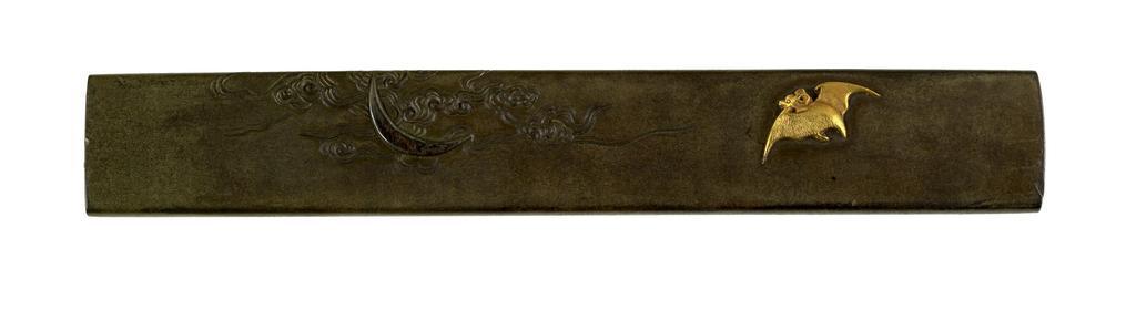 | Keywords: Japanese - Kozuka with a Bat and Crescent Moon in Clouds - Walters 51788.jpg A bat at the right side of the kozuka is shown flying towards the moon on the left Incised lines form clouds around the moon Additional clouds were drawn on the back Bats are a lucky emblem date shibuichi gold cm 9 6 accession number 51 788 34064 Henry Walters Baltimore date and mode of acquisition unknown Walters Art Museum Henry Walters Acquired by Henry Walters none place of origin Japan Walters Art Museum license Kozuka in the Walters Art Museum Media contributed by the Walters Art Museum needs category review |