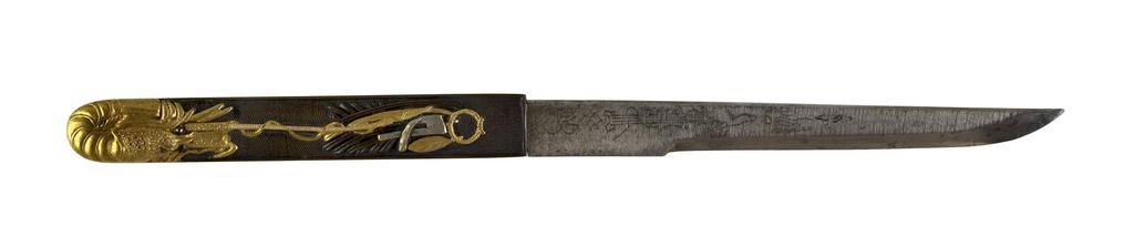 | Keywords: Japanese - Kozuka with New Year's Decorations - Walters 5111494.jpg This kozuka is decorated with symbols of New Year's including pine boughs Spiny lobsters are commonly eaten at New Year's as a sign of longevity They are associated with a long life because their tails are curved like the back of an elderly person's This is part of a mounted set century 19 silver shakudo gold cm 21 accession number 51 1149 4 30069 William T / Henry Walters Collection Baltimore date and mode of acquisition unknown Walters Art Museum Henry Walters Acquired by William T or Henry Walters none place of origin Japan Walters Art Museum license Kozuka in the Walters Art Museum Media contributed by the Walters Art Museum needs category review |
