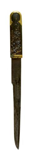 Keywords: Japanese - Kozuka with Plum Blossoms - Walters 5111663.jpg Plum blossoms the first flower to bloom in the spring are depicted on this kozuka The ends are decorated in gold This is part of a mounted set century 18 19 Edo iron gold cm 9 6 accession number 51 1166 3 36732 Henry Walters Baltimore date and mode of acquistion unknown Walters Art Museum Henry Walters Acquired by Henry Walters none place of origin Japan Walters Art Museum license Kozuka in the Walters Art Museum Media contributed by the Walters Art Museum needs category review |