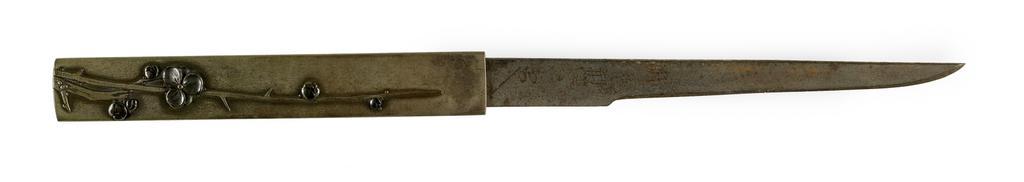 Keywords: Japanese - Kozuka with Plum Blossoms - Walters 5112734.jpg A plum tree branch with blossoms and buds decorates this kozuka Plum blossoms are the first flower of spring This is part of a mounted set century 19 Edo-Meiji shibuichi sentoku cm 20 5 accession number 51 1273 4 79557 William T / Henry Walters Collection Baltimore date and mode of acquisition unknown Walters Art Museum Henry Walters Acquired by Willam T or Henry Walters none place of origin Japan Walters Art Museum license Kozuka in the Walters Art Museum Media contributed by the Walters Art Museum needs category review |