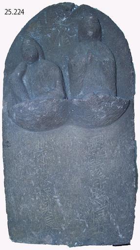 Keywords: Japanese - Memorial Stone - Walters 25224.jpg This stone was erected to help ensure that a pious Buddhist couple would be reborn in the Paradise of the Western Buddha They were given Buddhist names and called female believer left and male believer right The seated left-hand figure looks like the Bodhisattva Kannon the Indian Avalokitesvara the one on the right the Bodhisattva Jizo both of whom dwell in the Western Paradise ca 18th century Edo stone cm 53 3 29 8 22 9 accession number 25 224 6440 Professor Walther Kirchner Baltimore date and mode of acquisition unknown Walters Art Museum Gift of Professor Walther Kirchner 2002 place of origin Japan Walters Art Museum license Art of Japan in the Walters Art Museum Media contributed by the Walters Art Museum needs category review