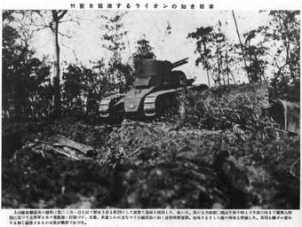 Keywords: Japanese tank advancing like a lion through a bamboo grove.jpg en Japanese tank advancing like a lion through a bamboo grove ja 竹藪を猛 するライオンの如き戰車 Date of publication March 1932 忠 之日 社編輯部編 日支事變寫 帖 昭和七年三 忠 之日 社 March 1932 unknown photographer PD-Japan-oldphoto Uploaded with UploadWizard Renault NC series Battle of Shanghai 1932 - Japanese forces |