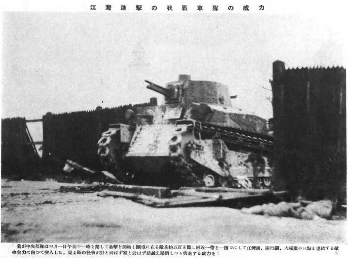 Keywords: Japanese tank advancing toward Chiang-Wan-Chen.jpg en Japanese tank advancing toward Chiang-Wan-Chen ja 江灣 撃の我戰 隊の威力 Date of publication March 1932 忠 之日 社編輯部編 日支事變寫 帖 昭和七年三 忠 之日 社 March 1932 unknown photographer PD-Japan-oldphoto Uploaded with UploadWizard Type 89 Chi-I Battle of Shanghai 1932 - Japanese forces Jiangwan Town |