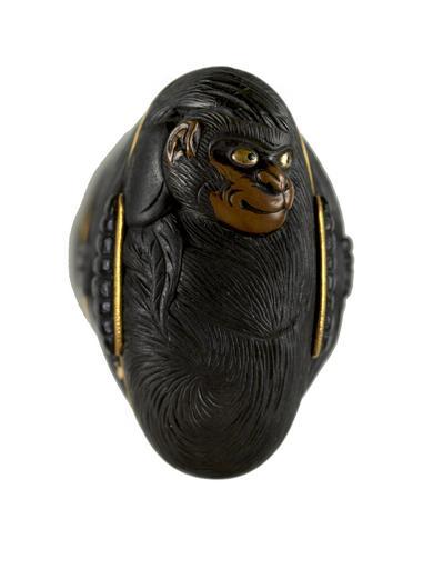 Keywords: Japanese - Tsuka with Animals - Walters 5112443B - Mark A.jpg Three animals all of which appear regularly in Japanese folk tales are featured on this tsuka The kashira is in the shape of a monkey This is probably made by the same metalworker who made the accompanying fuchi because there is a folk tale about an encounter between a monkey and crab which is shown on the fuchi One menuki is in the shape of a badger The other is of a rabbit pounding rice cakes This is the figure said to be in the moon The tsuka is part of a mounted set 2nd half Other date century 19 Meiji brown lacquer iron ray skin gold copper cm 18 3 accession number 51 1244 3B 79266 William T / Henry Walters Collection Baltimore date and mode of acquisition unknown Walters Art Museum Henry Walters Acquired by William T or Henry Walters none place of origin Tokyo Japan Walters Art Museum license Tsuka in the Walters Art Museum Media contributed by the Walters Art Museum needs category review Media contributed by the Walters Art Museum needs artist review Reliefs of monkeys on Japanese sword fittings |