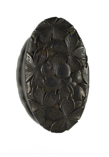 | Keywords: Japanese - Tsuka with Cherry Blossoms, Wisteria Crest and Peony Crest - Walters 5112663B - Detail A.jpg The kashira of cherry blossom matches the other items in this set by Okamoto Tomokata Two large metal plates are used on the tsuka in place of menuki Both have a background of cherry blossoms and family crest One crest is of wisteria with the character kyû or hisashi meaning long time in the circle made by the flowers The other crest is in the form of a large peony This is part of a mounted set late 18th-early 19th century late Edo iron silver brown-black lacquer wood mother-of-pearl cm 17 3 accession number 51 1266 3B 79258 Henry Walters Baltimore date and mode of acquisition unknown Walters Art Museum Henry Walters Acquired by Henry Walters none place of origin Hagi Japan Walters Art Museum license Tsuka in the Walters Art Museum Media contributed by the Walters Art Museum needs category review Okamoto Tomokata |