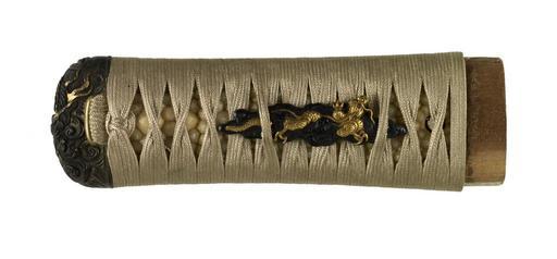 Keywords: Japanese - Tsuka with Dragons, Clouds, and Mt Fuji - Walters 5112813B.jpg The kashira on the end depicts a dragon amongst clouds with gold highlights One of the menuki is in the shape of a gold dragon flying through shakudo clouds The other depicts Mt Fuji The pairing of a dragon and Mt Fuji is an emblem of success This is part of a mounted set century 18 19 late Edo-Meiji silver ray skin gold shakudo cm 12 2 accession number 51 1281 3B 2350 Henry Walters Baltimore date and mode of acquisition unknown Walters Art Museum Henry Walters Acquired by Henry Walters none place of origin Japan Walters Art Museum license Tsuka in the Walters Art Museum Media contributed by the Walters Art Museum needs category review Media contributed by the Walters Art Museum needs artist review |