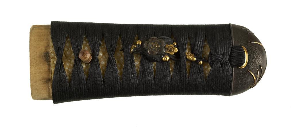 Keywords: Japanese - Tsuka with Flowers - Walters 5112173B.jpg The kashira is decorated with pampas grass which is one of the celebrated autumn flowers The two menuki are in the shape of blossoming plum branches Plum is the first tree to flower in the spring This is part of a mounted set 18th-19th centry Edo silver gold shibuichi ray skin silk cord wood cm 10 9 accession number 51 1217 3B 79604 Henry Walters Baltimore date and mode of acquistion unknown Walters Art Museum Henry Walters Acquired by Henry Walters none place of origin Japan Walters Art Museum license Tsuka in the Walters Art Museum Media contributed by the Walters Art Museum needs category review |