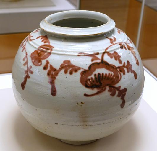 Keywords: Jar with flower design, Korea, Joseon dynasty, 18th century, porcelain with copper-red paint - Ethnological Museum, Berlin - DSC02038.JPG en Exhibit in the Ethnological Museum Berlin Germany Photography was permitted in the museum without restriction 2014-11-11 10 46 17 own Daderot other versions cc-zero Ceramics of Korea in the Ethnological Museum Berlin Uploaded with UploadWizard |