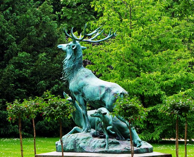 Keywords: jardin du luxembourg france statue sculpture monument artistic trees nature outside deer