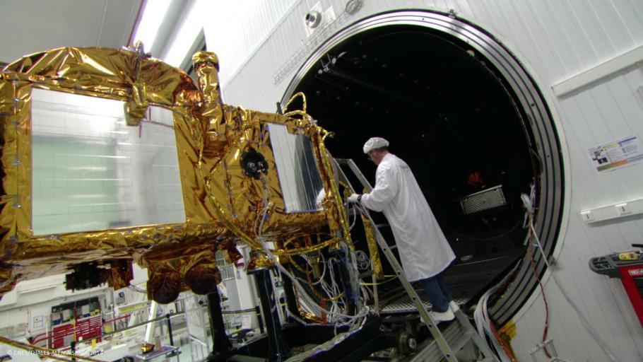 MAKE A MEME View Large Image The Jason-3 satellite undergoes testing in a clean room at Thales Alenia Space in France. Jason-3 is the fourth mission in the U.S.-European series of satellite missions that measure the height of the ocean surface and other ocean surface ...