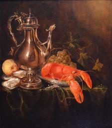 | Keywords: Jasper Geeraerts - A still life with a silver ewer, a lobster on a porcelain plate, shrimps, oysters, a lemon, and grapes.jpg Artwork creator Jasper Geeraerts en A still life with a silver ewer a lobster on a porcelain plate shrimps oysters a lemon and grapes 1634-1654 http //collection-lingenauber org/still_life_paintimgs html oil panel cm 60 51 Collection Lingenauber Monaco object history credit line Signed in upper right corner PD-old-100 Jasper Geeraards Collection Lingenauber Baroque still life paintings of fruit Oil still life paintings Paintings of lobsters Still life paintings with oysters |