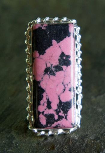 Keywords: jasper pink black abstract rectangle silver metal jewelry jewel stone gem gemstone huge cabochon cab ring setting sterling