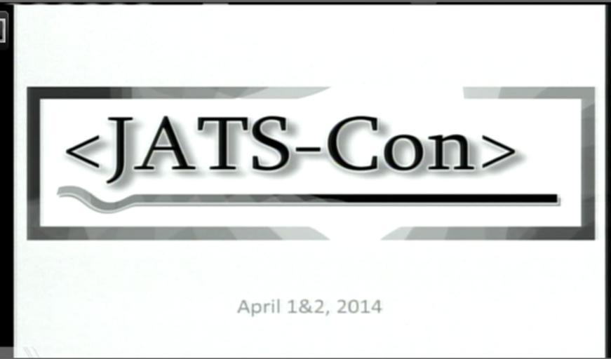 Keywords: JATSCon.png en JATSCon videocast screen shot 1 2014-04-01 15 26 05 own Klortho cc-zero Uploaded with UploadWizard JATSCon JATS Screenshots
