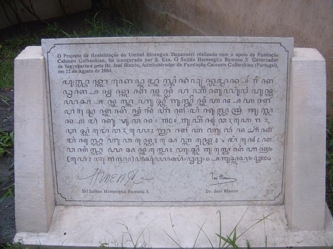 MAKE A MEME View Large Image Javanese script01.jpg en Javanese_script at the en Water Palace en Jogjakarta - bilingual Portuguese / Javanese Own 2007-11 Vberger Files by User Vberger Javanese script Portuguese language Bilingual plaques Calouste Gulbenkian