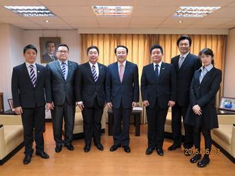 Keywords: 亞協李會長(中)接見國際青年商會總會(JCI)渡康嘉副會長,全體與會人員合影留念 aear20130808 亞東 關係協會