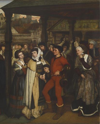 Keywords: Jean August Hendrik Leys - The Edict-s- of Charles V - Walters 37123 - Detail A.jpg Baron Leys was regarded as Belgium's foremost artist in the mid 19th century About 1851 he adopted a deliberately archaizing style resulting in part from a visit to Germany in 1852 This scene is set in the artist's native Antwerp identifiable because of the famous church spire in the distance Between 1520 and 1550 Charles V emperor of the Holy Roman Empire issued 11 edicts making the practice of Protestantism a crime punishable by death Antwerp served as a major center of learning and finance that had attracted many foreigners especially Jews and Protestants ca 1861 oil on panel cm 138 245 ; Framed cm 182 9 280 7 12 7 accession number 37 123 7985 Comte W de Bourgade date and mode of acquisition unknown Comte de Liedekerke-Beaufort Dinant date and mode of acquisition unknown Charles Deschamps October 24 1883 mode of acquisition unknown William T Walters Baltimore October 1883 by purchase Henry Walters city Baltimore Walters Art Museum Henry Walters Acquired by William T Walters 1883 Label Paper sticker on reverse Exhibition Historique de l'art Belge / Nom de possesseur du tableau Cte W de Bourgade / Subjet de l'oeuvre Publication des edits de Charles Quint / Valeur / Nom de l'auteur Bon Leys Salute to Belgium place of origin Picardy Walters Art Museum license 2D Salute to Belgium The Edicts of Charles V Media contributed by the Walters Art Museum needs category review Paintings in the Walters Art Museum |
