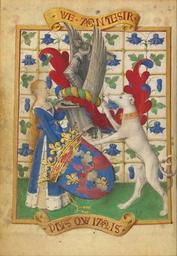 | Keywords: Jean Fouquet (French, born about 1415 - 1420, died before 1481) - Coat of Arms Held by a Woman and a Greyhound - Google Art Project.jpg  1415 1481 born about 1415 - 1420 died before 1481 6829309 Jean Fouquet French French 1415 - 1481 /collection/the-j-paul-getty-museum/artwork/coat-of-arms-held-by-a-woman-and-a-greyhound-jean-fouquet-french-born-about-1415-1420-died-before-1481/6827176/ Jean Fouquet French born about 1415 - 1420 died before 1481 illuminator /artist/jean-fouquet/4125009/ 4125009 /collection/the-j-paul-getty-museum/ The J Paul Getty Museum 343005 http //www getty edu/museum 3/12/2012 1 54 43 PM /collection/the-j-paul-getty-museum/artwork/coat-of-arms-held-by-a-woman-and-a-greyhound-jean-fouquet-french-born-about-1415-1420-died-before-1481/6827176/ 1455 1455 Simon de Varie Dogs Tempera colors gold paint gold leaf and ink on parchment 114 6827176 True 1455 3/25/2012 12 04 27 PM lido getty edu-gm-obj2840 http //www getty edu/art/gettyguide/artObjectDetails artobj 2840 http //www getty edu/legal/copyright html Folio 1450 1460 Paris France Creation w83 x h114 cm 1455 False 0 689453125 Part coat-of-arms-held-by-a-woman-and-a-greyhound-jean-fouquet-french-born-about-1415-1420-died-before-1481 Coat of Arms Held by a Woman and a Greyhound c 83 Tempera colors gold paint gold leaf and ink on parchment Partial gift of Gerald F Borrmann Simon de Varie Dogs http //www getty edu/legal/copyright html special url_id cgEIvw0NzkW01A PD-old-100-1923 1481 Google Art Project works by Jean Fouquet MS 7 Getty museum - Book of hours Simon de Varie Medieval miniatures of dogs Coats of arms in medieval miniature |