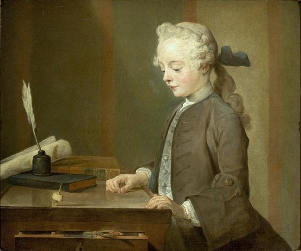 | Keywords: Jean Siméon Chardin - Retrato de Auguste Gabriel Godefroy.jpg  Artwork Creator Jean-Baptiste Siméon Chardin Portrait du fils de M Godefroy joaillier appliqué à vior tourner un toton Enfant au toton Portrait of Auguste Gabriel Godefroy Jeune Ecolier qui Joue au Touton 1741 Oil on canvas cm 67 73 Institution Museu de Arte de São Paulo Genre works Signed and dated CHARDIN 1741 Later autograph version of the same composition in the Louvre http //www masp art br/masp2010/acervo_detalheobra php id 208 other versions <gallery>Jean-Baptiste Siméon Chardin 006 jpg 1735 version at the Louvre</gallery> PD-old-100 Auguste Gabriel Godefroy L'enfant au toton Chardin São Paulo French paintings in the Museu de Arte de São Paulo 1741 portrait paintings from France 18th-century paintings in Brazil Copies of portrait paintings Rococo paintings in Brazil |
