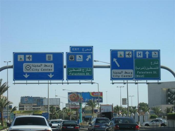 Keywords: Jeddah street.JPG Madina Road Jeddah Saudi Arabia own 06/03/29 Thomas Becker Bilingual road signs Street signs in Saudi Arabia